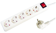 VDE TYPE POWER STRAP 5XAC FEMALE W/CHILDREN PROTECTOR W/SWITCH W/O CABLE