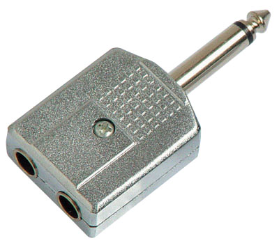 6.35MM MONO PLUG TO 2x6.35MM MONO JACKS, NICKEL